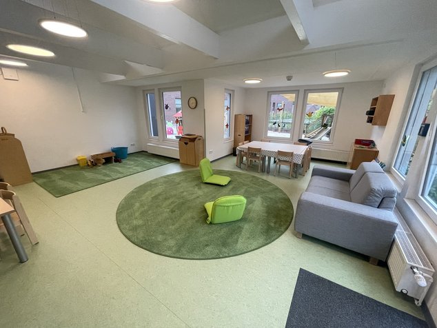 Jede Gruppe verfügt über einen Gruppenraum und Nebenraum. Dieser wird gemeinsam nach den Interessen, Wünschen und Bedürfnissen der Kinder ausgestattet und nach Bedarf verändert. Jede Gruppe verfügt über sanitäre Anlagen und Wickelmöglichkeiten