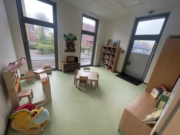 Für Elterngespräche, Teambesprechungen, Mitarbeitergespräche. Außerdem gibt es dort PC- Arbeitsplätze für das Team.