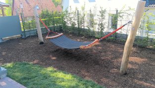 Das Außengelände bietet einen optimalen Ausgleich zum Innenbereich. Es wurde im Jahr 2025 in vielen Bereichen verändert. Heute steht allen Kindern, sowohl den U 3 als auch den Ü3 Kindern, der gesamte Spielbereich zur Verfügung. Die Kinder haben viel Platz zum Verstecken, zum Balancieren und Schaukeln oder auch zum Rennen und Fahren verschiedenster Fahrzeuge. Außerdem haben die Kinder die Möglichkeit eine tolle, große Matschanlage zu nutzen.