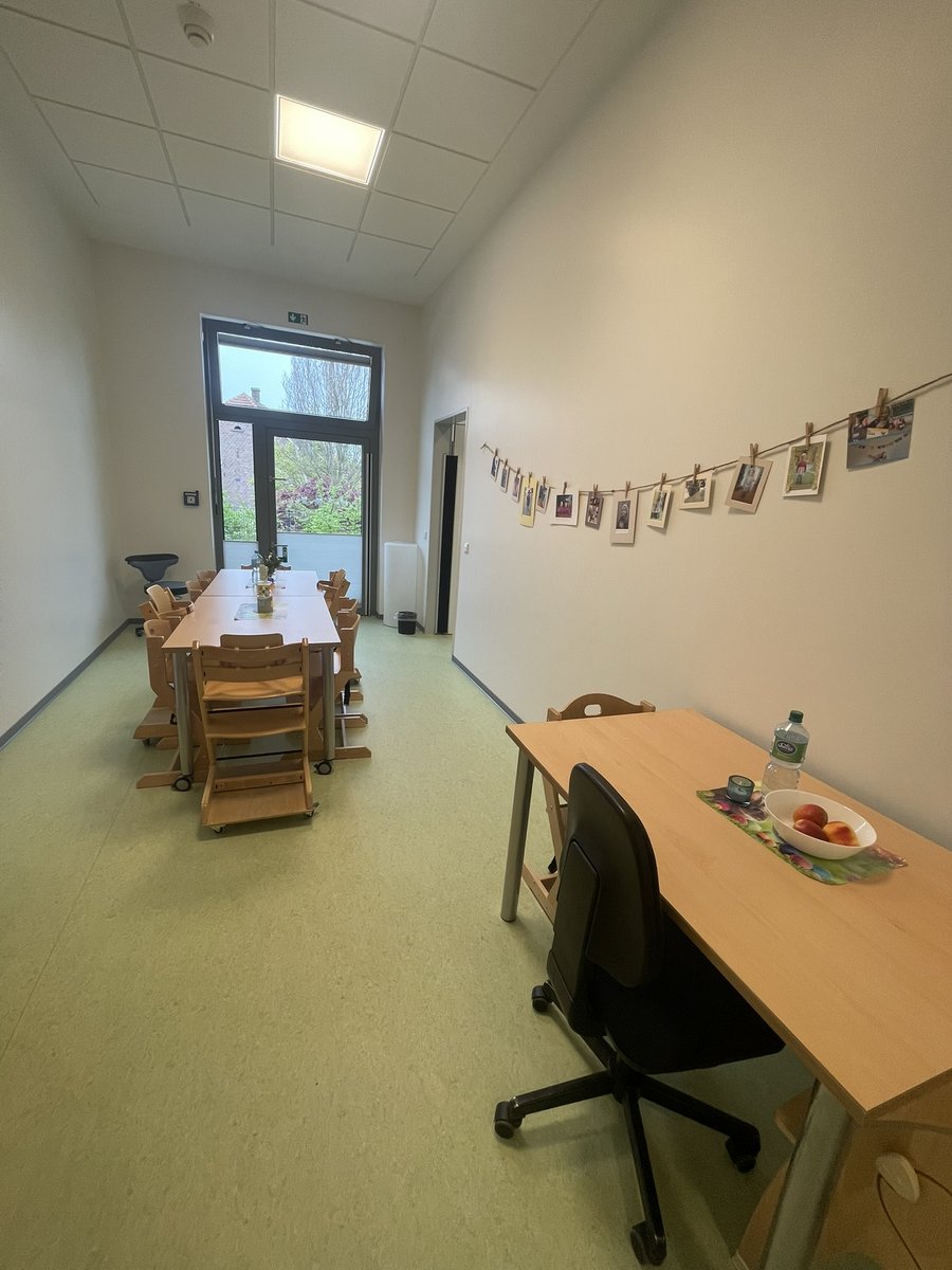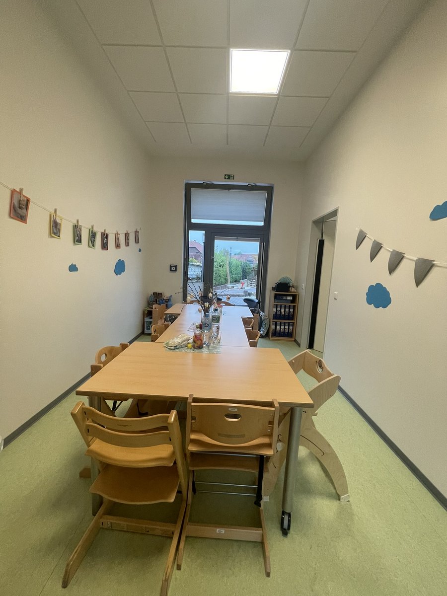 Jede Gruppe verfügt über einen Gruppenraum und einen Nebenraum. Diese werden gemeinsam nach den Interessen, Wünschen und Bedürfnissen ausgestattet und nach Bedarf verändert. Jede Gruppe verfügt über sanitäre Anlagen und Wickelmöglichkeiten.