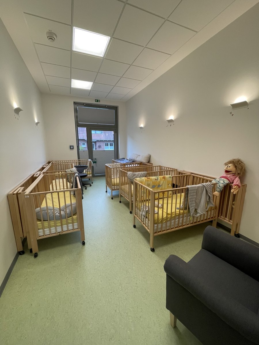 Wir betreuen 90 Kinder in fünf Gruppen im Alter von vier Monaten bis zur Einschulung. Die Einrichtung bietet eine inklusive Betreuung an.